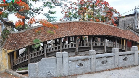 北部ナムディン省にある500歳の瓦屋根付きの太鼓橋