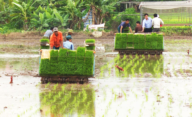 「フースエン県は、農業生産の機械化を集中的に行っています。そこで、農家に田植えを機械化することを奨励しています。田植え機が導入された稲作面積は2012年は70ヘクタールだけでしたが、現在は、1000ヘクタールに上っています。また、自動播種機が導入された稲作面積はおよそ14%に達していますよ。」