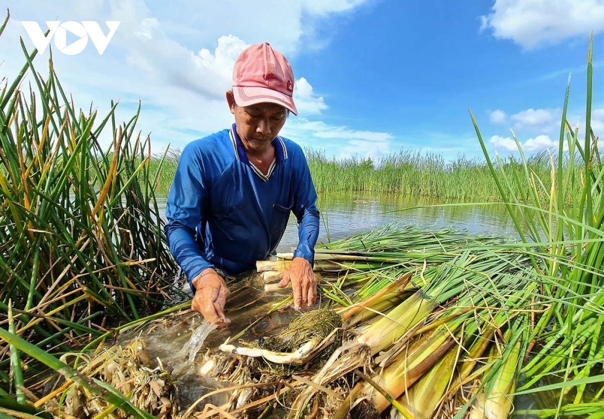 ところで、成長したガマは収穫された後、土の中の白い根が見えるまで皮をむきます。この部分は、塩漬けにしたり、和え物、スープ、炒め物など、様々な食材として利用され美味しい料理になります。今では、ガマはカマウ省における特産品の一つとして知られるようになりました。