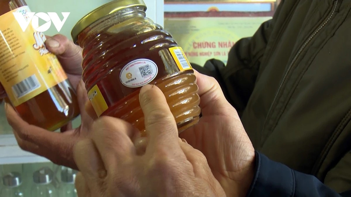 「当協同組合のハチミツは採取された後、脱水されます。その後、トレーサビリティスタンプが貼られたボトルや瓶に詰められます。この製品は VietGap 基準を満たしているほか、現在 OCOP=一村一品製品としても認定されています」