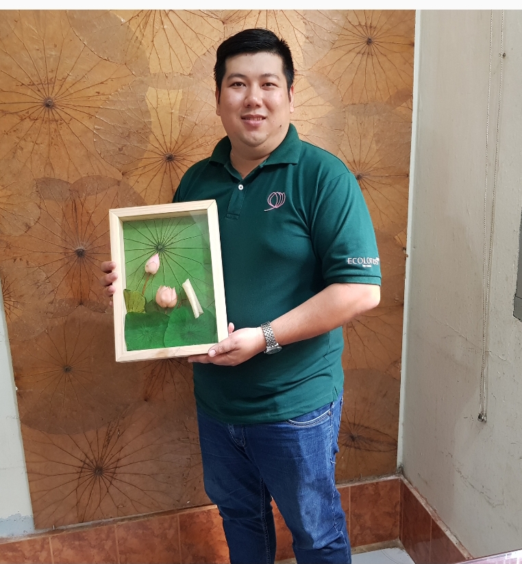 2016年の国家スタートアップコンクールで、コンさんが作ったハスのドライフラワーで出来た製品は、3等賞を獲得しました。彼が作ったハスのドライフラワー製品は国内外の消費者に愛用されつつあります。