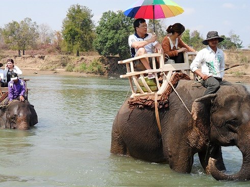 ホーラク(Hồ Lắk)エコツアー地区の雄ゾウは、毎日、観光客を乗せて、この生態地区を一周した後に、お馴染みのバナナの木を食べます。象使いのイ・ウイン・エユンさんによりますと、以前、このゾウは、自分でエサを探して食べるために、ゾウ乗りツアーに参加する1週間ごとに森林に1~2週間ほど戻りました。