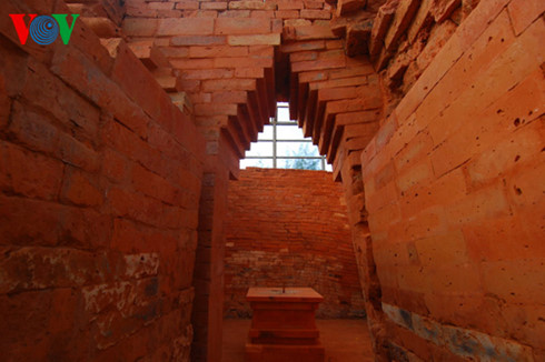 ホアイ チャム塔の中に入ってみると、これらの塔が柱や棟柱を使わずに建てられていることに気が付くでしょう。そのため屋根はレンガを少しずつ、ずらして作られています。これもチャンパ建築様式の特徴の1つです。