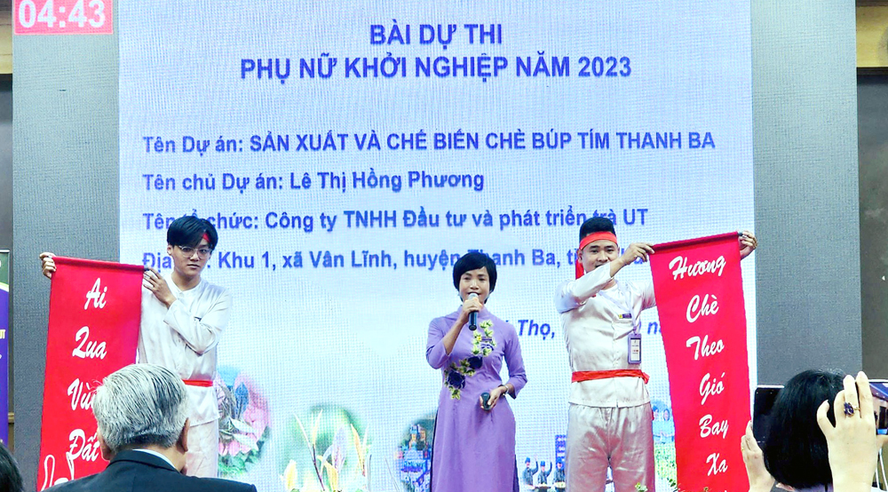 ホン・フォンさんの努力により、タインバー県の紫芽茶製品はフートー省からOCOP5つ星認証を受けました。また、彼女のプロジェクトは2023年のベトナム女性連合会主催のコンテストで2位を獲得しました。