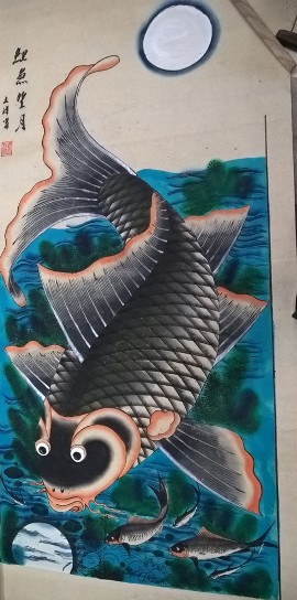 「母はハンチョン版画が大好きで、いつも祭壇の両側にクジャクと鯉の2つの絵をかけていました。クジャクの絵は、女性を象徴するもので、家族の幸せや高尚さを示します。鯉は、男性を表していて、竜門を登りきった鯉は竜になれるという言い伝えから、成功を願う版画なんです。」