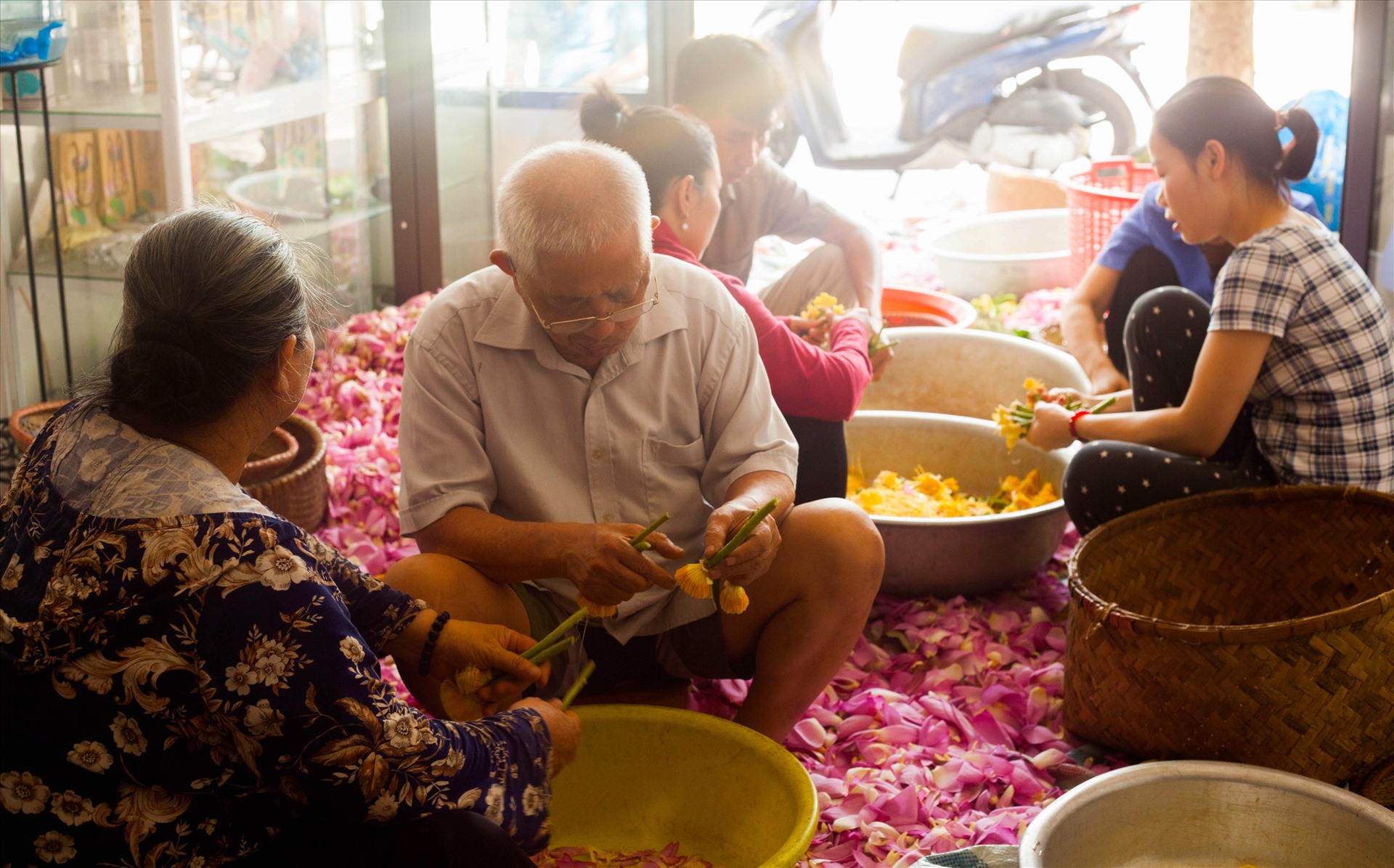 毎年、蓮の花が咲く季節になると、ディップさんは若者たちが連茶づくりを体験できるように、連茶づくり教室を開いています。ディップさんの話です。