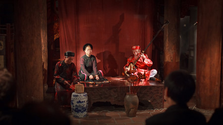 ソン 民謡とは、まとめられないですね。2009年にユネスコの無形文化遺産となったカーチューは、総合伝統芸能という感じでしょうか。3つの伝統楽器の演奏に合わせて、古いベトナム語の詩を歌うものです。