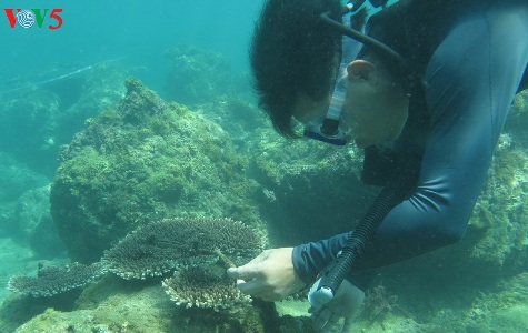ホアイ 近年、ニャチャン市の海洋学研究所の専門家の支援を受けて、チャム島の海洋保護区管理委員会は「チャム島の生物保護区にいるいくつかの石サンゴの復活技術の応用」という研究テーマを成功裏に実施しました。