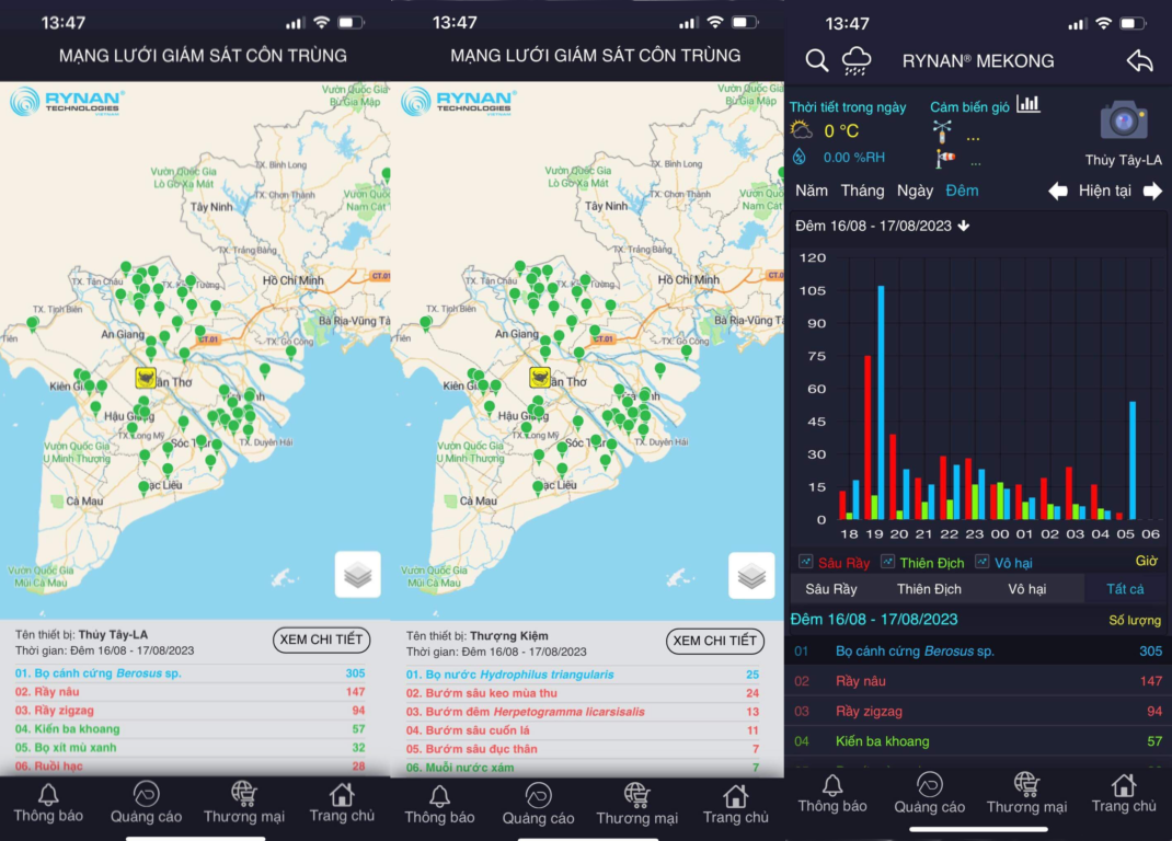 また、この昆虫観察システムを通じて、農民が田畑に行かずに、スマホでも害虫を統計したり、捕ったりすることができます。また、Ryan Mekongのアプリを通じて、農民たちがどこに居ても、いつでも害虫の状況を把握できるようになります。