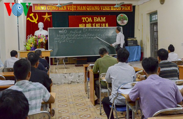 この3ヶ月間、毎晩、ディエンビエン省ディエンビエン県ノンルオン村の人民委員会の本部で、30人のタイ人はタイ族の古い文字を教える教室に参加してきました。その中で、最年長者は73歳、最少年者は15歳です。これらの人々はいずれも「タイ族の人ならば、タイの古い文字をわからなければならない」という共通の考えを持っています。