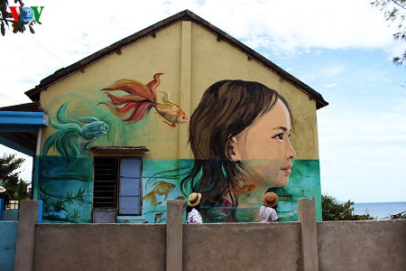 ソン そうですね。壁画村になる前、この村は元々どこにでもある漁村でした。でも、2016年6月、タムキ町人民委員会と韓国のKF=国際交流基金が実施してきた共同体の美術の交流プロジェクトにより、タムタイン村の古くなった民家の壁が色鮮やかな色彩で飾られるようになりました。