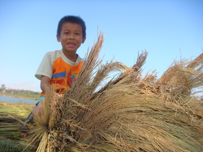 収穫を楽しんでいるヴァンキェウ族の子供(写真:dantri.com.vn)