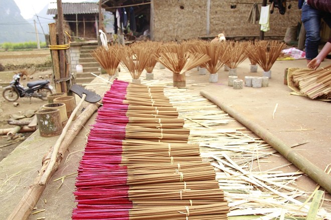 フジャタプ村の線香は、自然の香りを持つことと、燃えやすいこと、そして、長く保管できることで有名で、国内だけでなく、外国にも出荷されています。そのため、線香の製造は村人の主要な収入源となっており、村のすべての世帯がこの仕事をしています。フジャタプ村の党書記ホアン・ゴック・キムさんは次のように話しました。