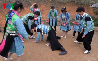 「わが村では、お正月に祭壇に置かれるお供え物として必ずお餅があります。また、すべての家族は自分の家で育てた豚や鶏を使って正月料理を作ります。そして、モン族の伝統的な遊びやスポーツを行ったり、伝統民謡を歌ったりするなど、お正月を楽しく過ごします。」