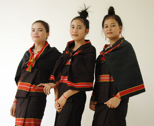 ソダン族の女性用の伝統服装の特徴はスカーフです。スカーフの色は主として黒ですが、色とりどりの綺麗な模様が施されます。そのスカーフは普段、2枚の布からなり、女性が自分自身で織らなけれなりません。コントゥム省ゴックホイ県に住むソダン族の一人イ・モンさんの話です。