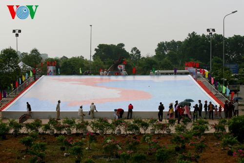 これは同省の主催による「全ベトナム人が祖国防衛建設事業に向かう」というプログラムの幕開けとなっています。席上、参加者らは愛国心、民族自尊人、祖国を防衛する決意などを示すために、「ベトナム各民族の文化・観光村」の中心地に設置されている面積が680平方メートルのベトナム地図に署名しました。