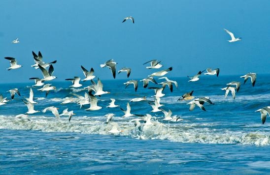 魚の群れと共に、広い海に向かっている