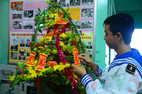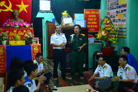 ベトナムの伝統的お正月テトを迎えるにあたり、先ごろ、ベトナム海軍の第2軍管区の幹部や、国内の報道機関のジャーナリストからなる代表団は最南端のカーマウ省の沖合いにあるリグDK1-10を訪れ、底に駐屯している兵士にテトのお祝いの言葉を述べました。