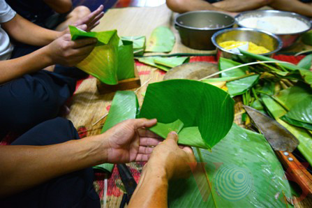 伝統的テトの料理バインチュンを作る