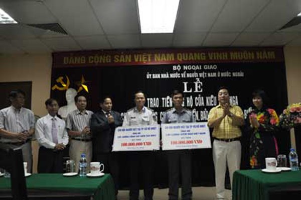 ロシア在留ベトナム人が漁民を支援するための義捐金を手渡す(写真:Danviet)