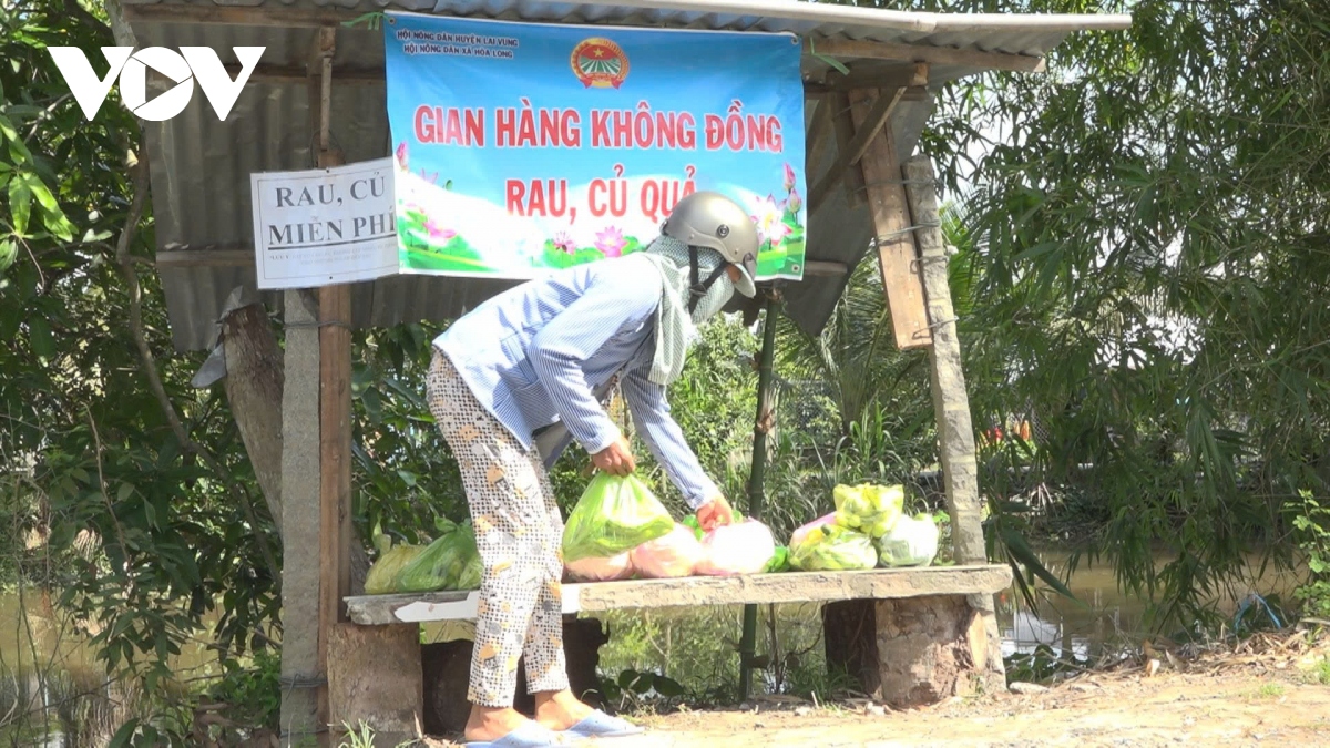 さらに、ソンさんはライブン県ホアロン村ロンホイ集落にある家の軒先にチャリティブースを設置しています。このチャリティブースは、地元に住む生活困窮者を助けるために、何百食ものチャリティ食材を預ける場所です。