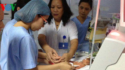 また、ズンさんが研究していた実用性の高いもう一つの研究結果は新生児黄疸の臨床症状、及び生児が黄疸になり易い要素を研究した事です。それと共に、ズンさんは同僚と共にアメリカのサンフランシスコ大学と連携して、ベトナムとアジアの幾つかの国における新生児養護の研究を行なっています。その他、ズンさんの研究グループはオーストラリア人教授と共に、低出生体重児に関する基準を見出すために研究しています。