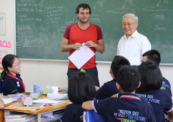 ハノイ市内の私立グェンシュウ学校の教師グェン・チョン・ビンさんと各世代の教師陣は、グェンシュウ小・中・高校学校をハノイ市内で最高質の学校に発展する為に全力を尽くしてきました。「質の高い教育サービスを提供する学校」というモデル校を実現させたグェンシュウ学校は、これまで、質の高い生徒を教育してきました。