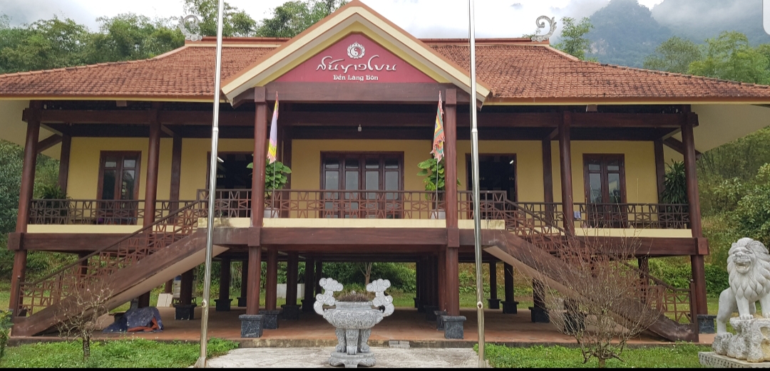 史書によりますと、18世紀末、タイ族出身のランボン氏は現在のマイチャウ県に行くとき、ここで平らな盆地があるほか、清らかな谷川、茂っている木々があることを見て、ここに止まって、村を築くことにしました。ランボン氏が逝去してから、地元の人々はここでランボン氏を祀る神社を建立しました。