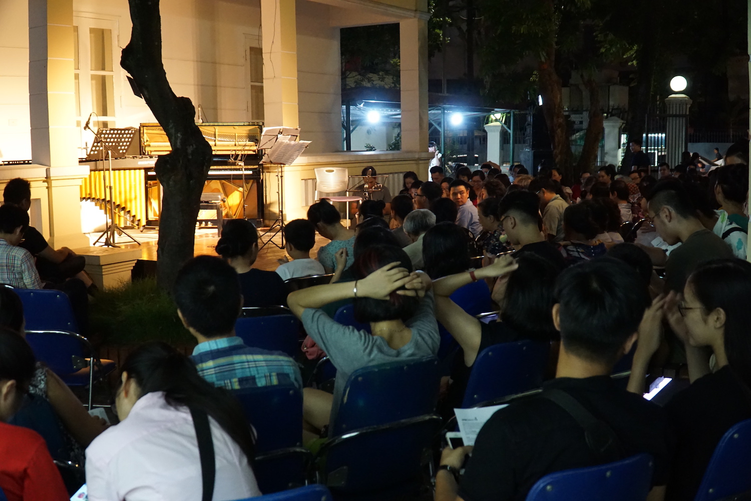 (VOVWORLD) - 既にお伝えしましたように、9月22日夜、在ベトナム日本文化交流センターは「9月のプレゼント」と題する第16回ガーデン・コンサートを行ない、演奏はハノイ・アンサンブルというバンドでした。ベトナム国立音楽院の若いアートストと講師によるハノイ・アンサンブルは、2010年、設立された室内楽演奏バンドです。 彼らは世界各国の著名な音楽院に留学経験があり、国内外の音楽コンテストで様々な賞を獲得しています。今回のコンサートには木琴の一種であるマリンバ演奏者1一人、ピアニスト1人を含め、バンドの6人が参加しました。この写真記事で、これをご紹介します。