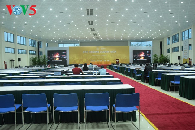 | APEC2017のイベントが様々な場所で開催されるが、この部屋ではイベントの生中継が行われ、ジャーナリストの便宜を図る。 |