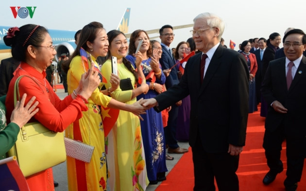 | ラオス在留ベトナム人多数が空港にチョン氏を出迎えに行く |