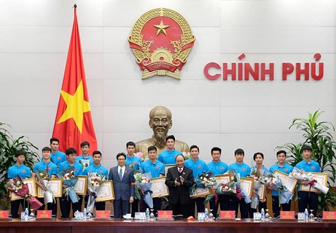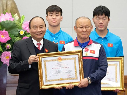 | フック首相がパク監督にお祝いの言葉を述べる(写真:VGP) |