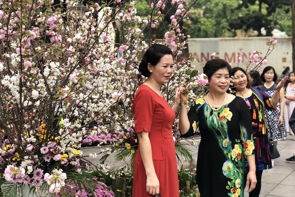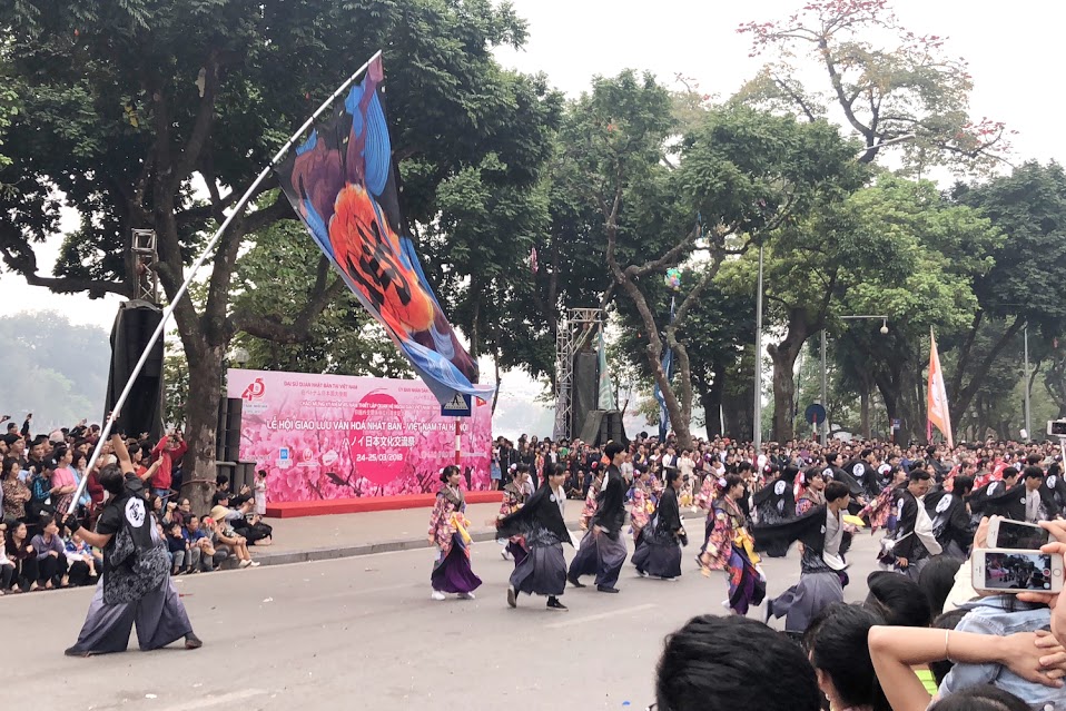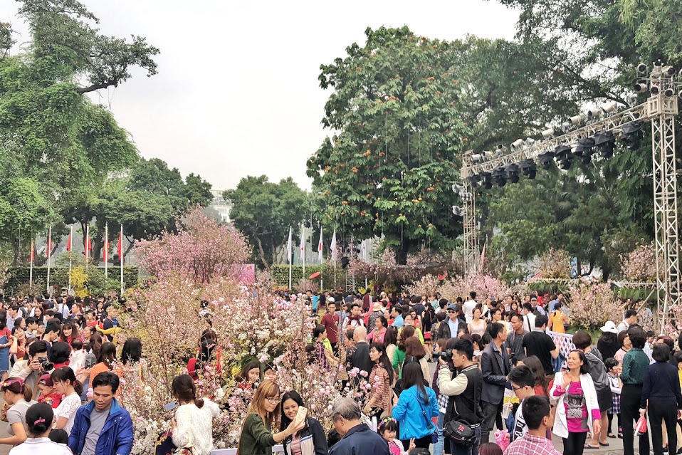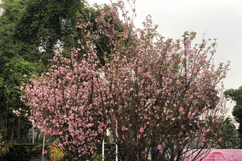 | ハノイ中心地で咲き誇る日本の桜 |
