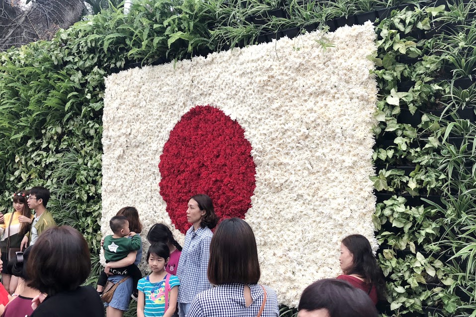 | 美しい花で結ばれた日本の国旗と・・・ |