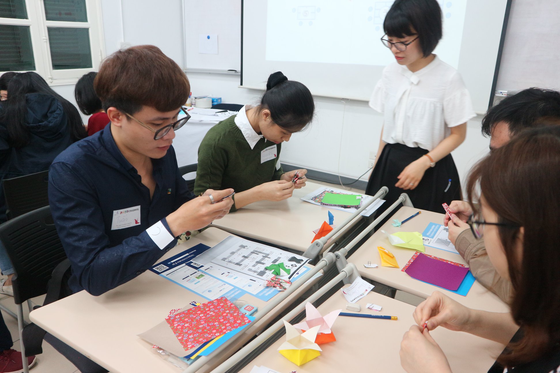 (VOVWORLD) - 既にお伝えしましたように、先月中旬、ハノイにある日本文化交流センターで、日本の伝統的芸術をベトナムに紹介する「おりがみで学ぶ日本文化」という特別イベントが開かれました。 日本文化交流センターの教師らは2時間にわたりって、折り紙の歴史や作り方などを紹介しました。イベントに参加した人々は折り紙の折り方を理解しているだけでなく、折り紙にかかわる言葉を始め、日本語で会話できるようになりました。イベントは日本文化を愛好するベトナム人の若者が互いに交流するチャンスともなりました。この写真記事で、これをご紹介します。 Thanh Tuan