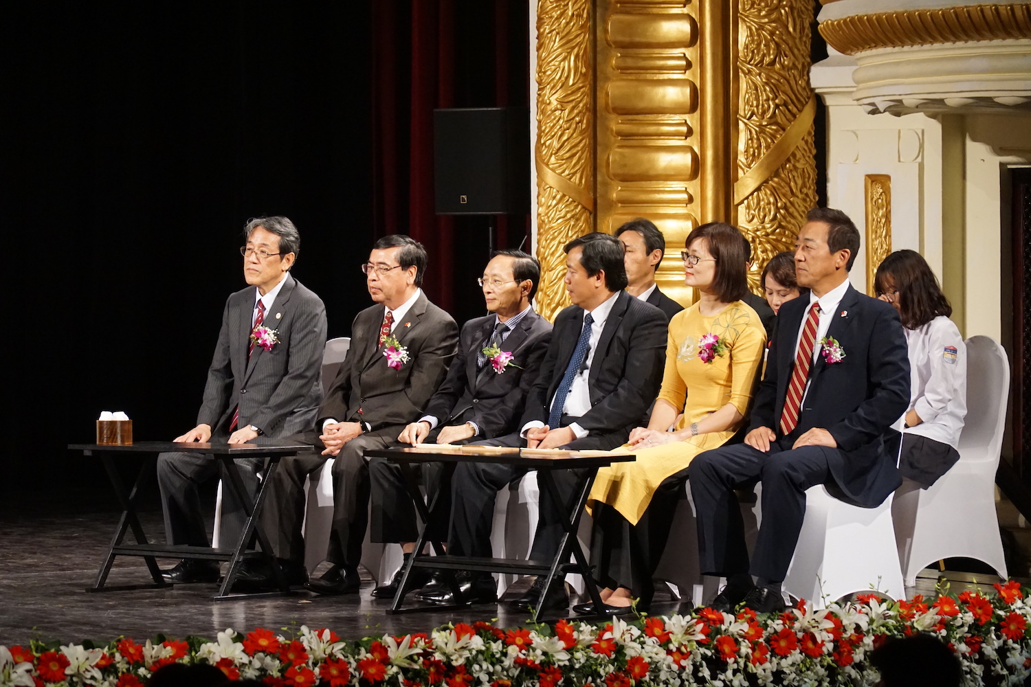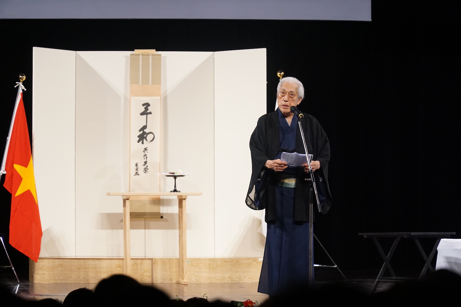 (VOVWORLD) - 既にお伝えしましたように、先ごろ、ハノイのオペラハウスで、日越友好・裏千家茶道交流行事が開催されました。これはベトナム・日本国交樹立45周年にあたり、行なわれたもので、在ベトナム日本大使館の梅田・邦夫大使、京都から茶道裏千家第15代元家元・千玄室大宗匠を始め、両国の代表や学生らが参加しました。 行事では、「一碗の茶から平和を」の精神を唱え、世界60カ国の300あまりの茶会に参加した千玄室大宗匠による献茶式、和合の茶会、記念講演、茶道のデモンストレーションなどが行なわれました。この写真記事で、このイベントをご紹介します。