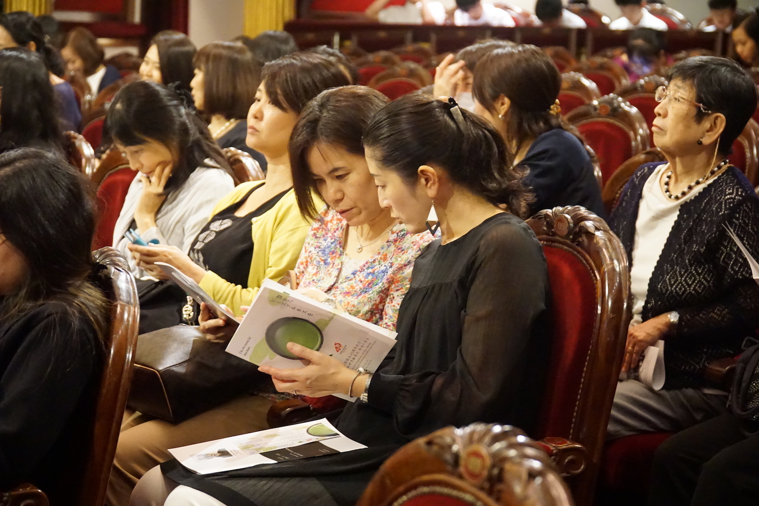 | 参加者が日本のお茶とお菓子を味わう |
