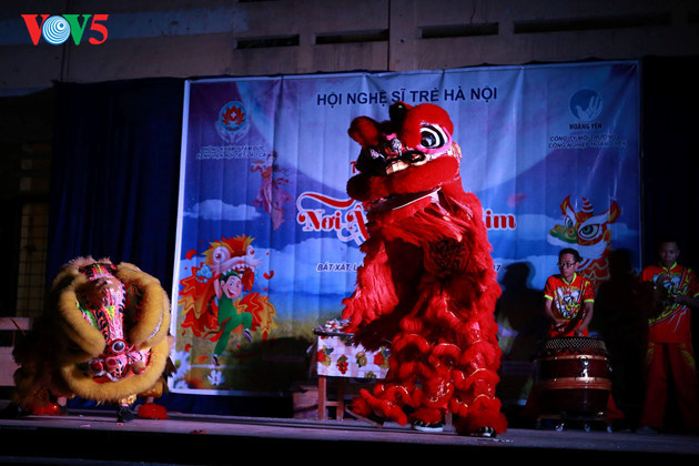 | ハノイ若手芸術家協会のパフォーマンスは子どもたちを魅了。 |