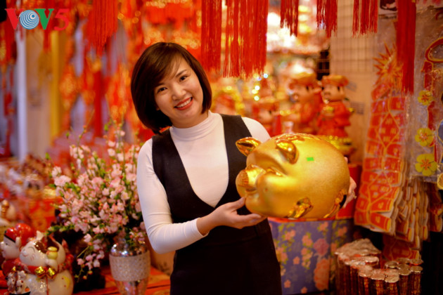 | また、テトの飾り物を売る街も賑わっている |
