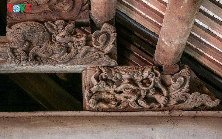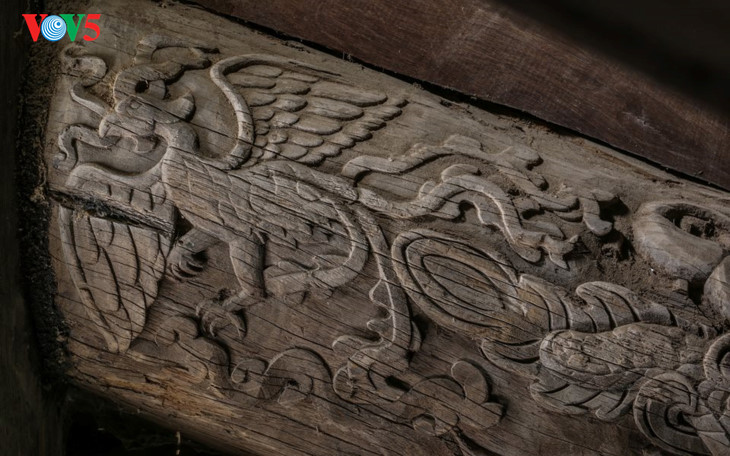 | 屋根を支える木造の骨組みが竜の模様を刻まれた |