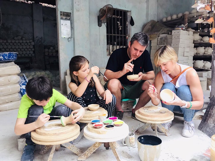 | バットチャン陶器村を訪れる外国人観光客(写真:Thu Phương/dulichbattrang.net) |