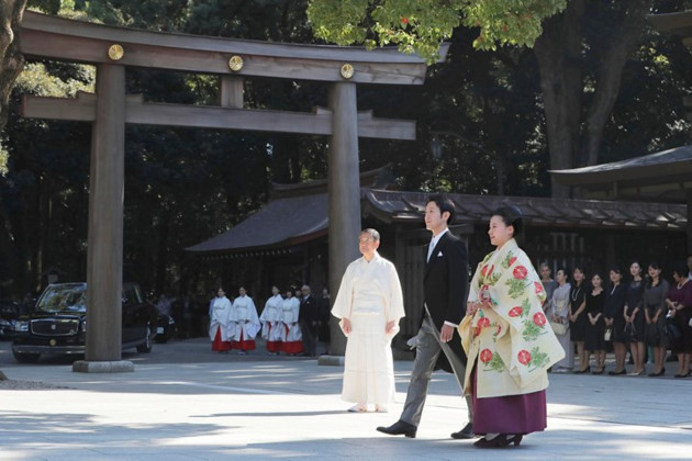| 絢子さまは「私の高祖父にあたります明治天皇が祭られておりますこの明治神宮にて、挙式をできたことをうれしく思います」と述べた。(写真:AP) |