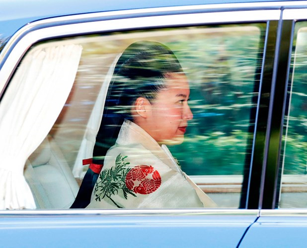 | 式に先立ち、東京・元赤坂の高円宮邸では、守谷さんの使者が絢子さまを迎えに行く「入第(じゅだい)の儀」が行われた。(写真:AP) |