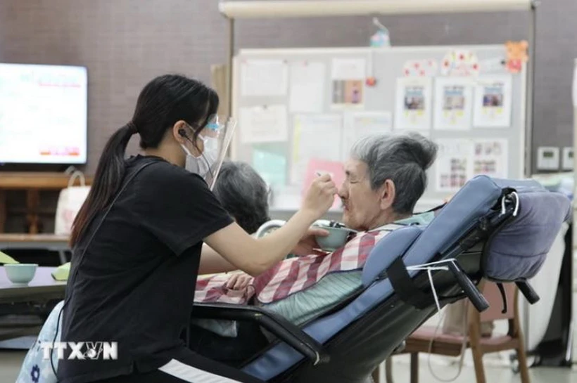 埼玉県内の複合福祉施設きりしきで働くベトナム出身の介護福祉士(TTXVN) |