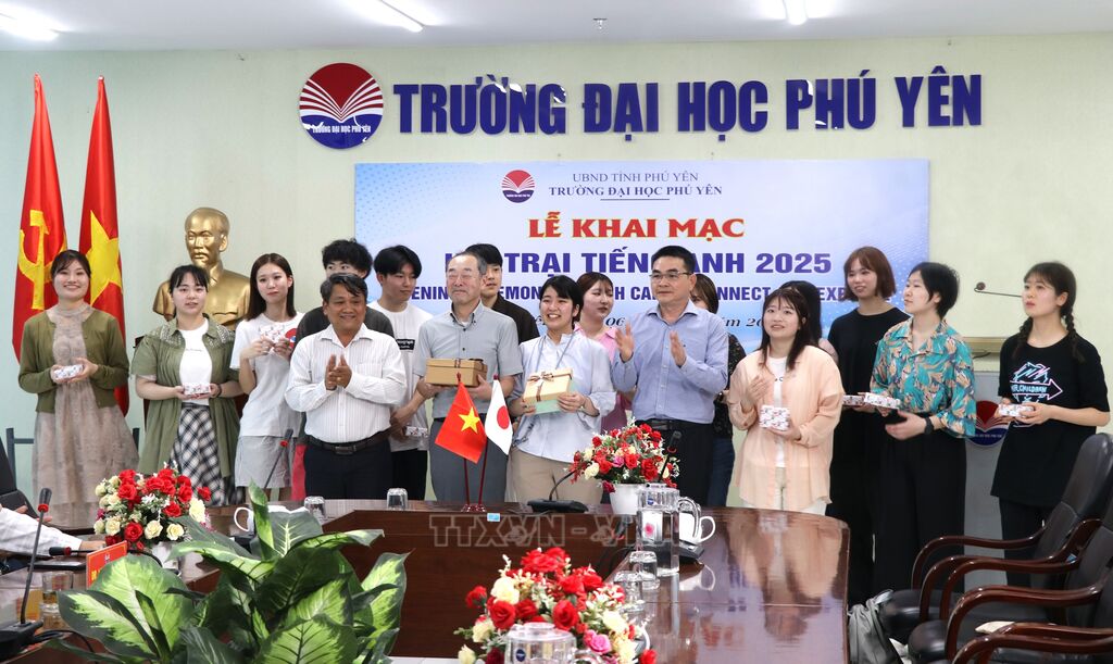 フーイエン省とフーイエン大学の指導者が、和歌山信愛大学の教員と学生の訪問団に贈り物を贈呈(写真:Tường Quân/TTXVN) |
