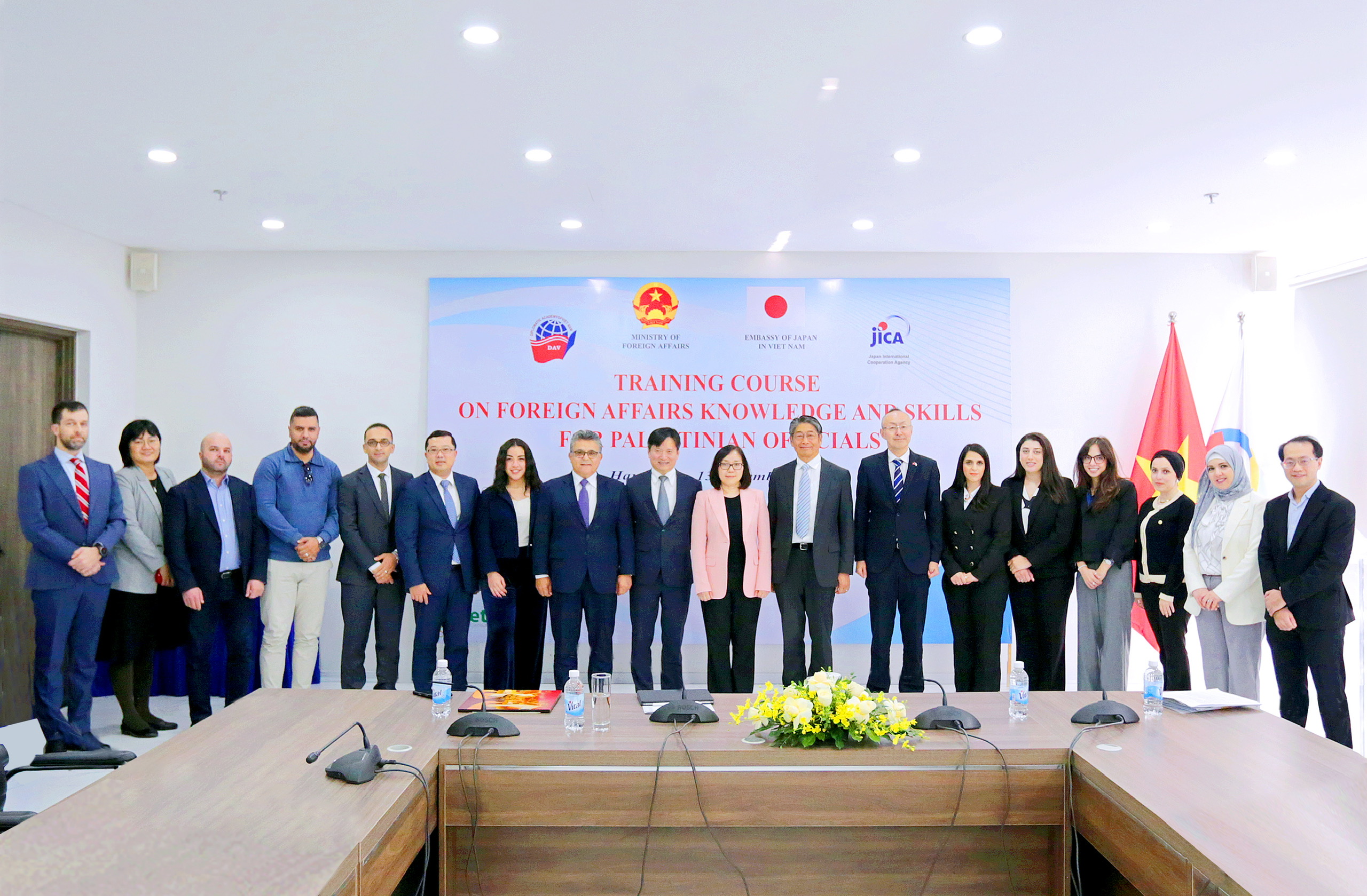 先週末、ハノイのベトナム外交学院(DAV)で、パレスチナ公務員を対象とした外交知識とスキルに関する短期研修が終了しました。研修は12月8日から13日までの6日間、「パレスチナ開発支援のための東アジア諸国会議(CEAPAD)」の枠組みの一環として、JICA国際協力機構とベトナム外交学院が共同で実施しました。