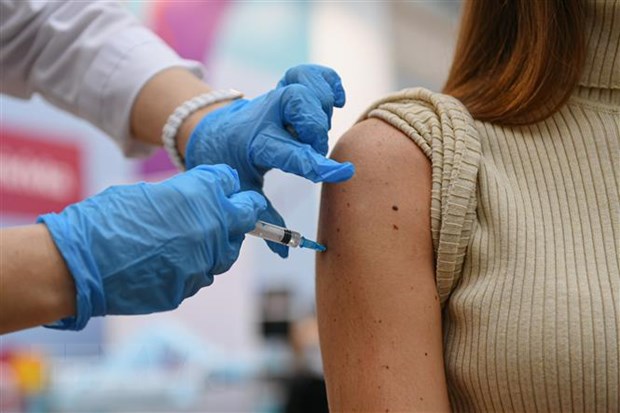 ロシアの首都モスクワで、新型コロナウイルスワクチン接種を受ける女性=THX/TTXVN |