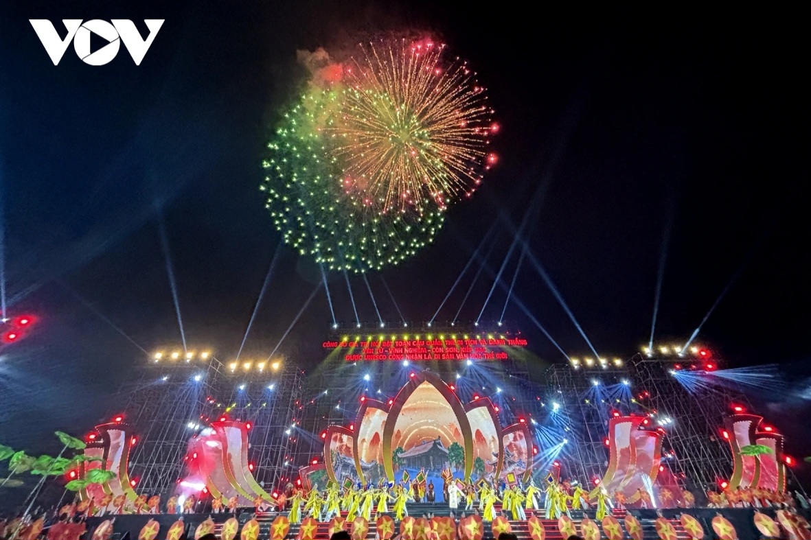 2025年8月17日夜に開催された、世界文化遺産「イエントゥー・ヴィンギエム・コンソン・キエップバック」の顕著な普遍的価値(OUV)公表式(写真:VOV) |
