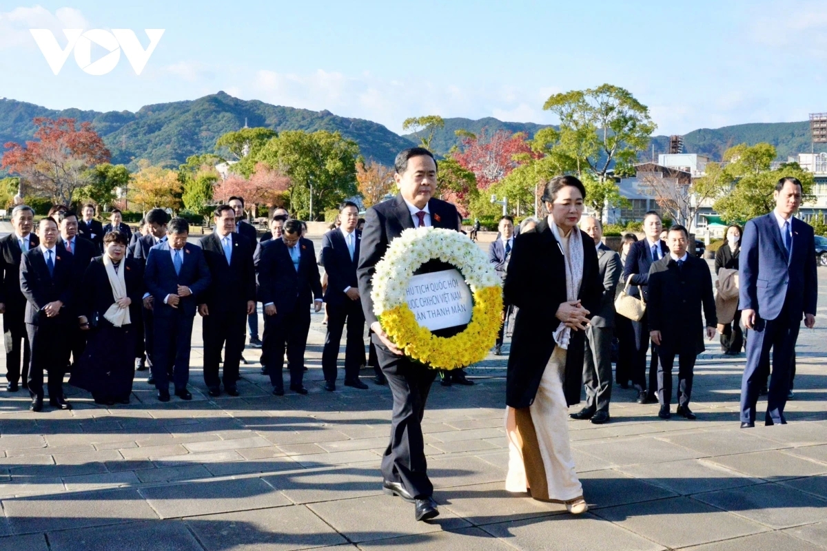 (VOVWORLD) - 7日午前、日本を訪問中のチャン・タイン・マン国会議長夫妻は平和公園で長崎原爆の犠牲者を追悼する花輪を捧げました。