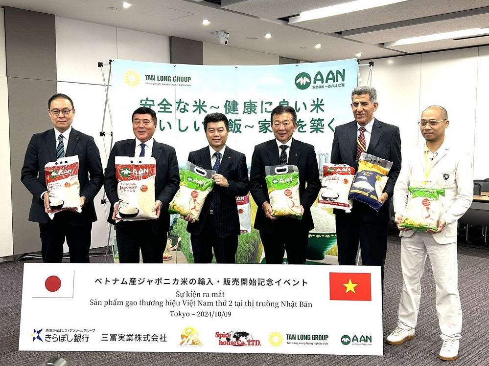 9日、東京都で、タンロングループが生産するベトナム産高品質米種のブランド米「AAn」は、東京都港区に本店を置く東京きらぼしフィナンシャルグループ傘下の地方銀行であるきらぼし銀行と連携して、日本市場で販売される第2回のベトナム精白米製品である「A An」ブランドのST25米発売式典を開催しました。